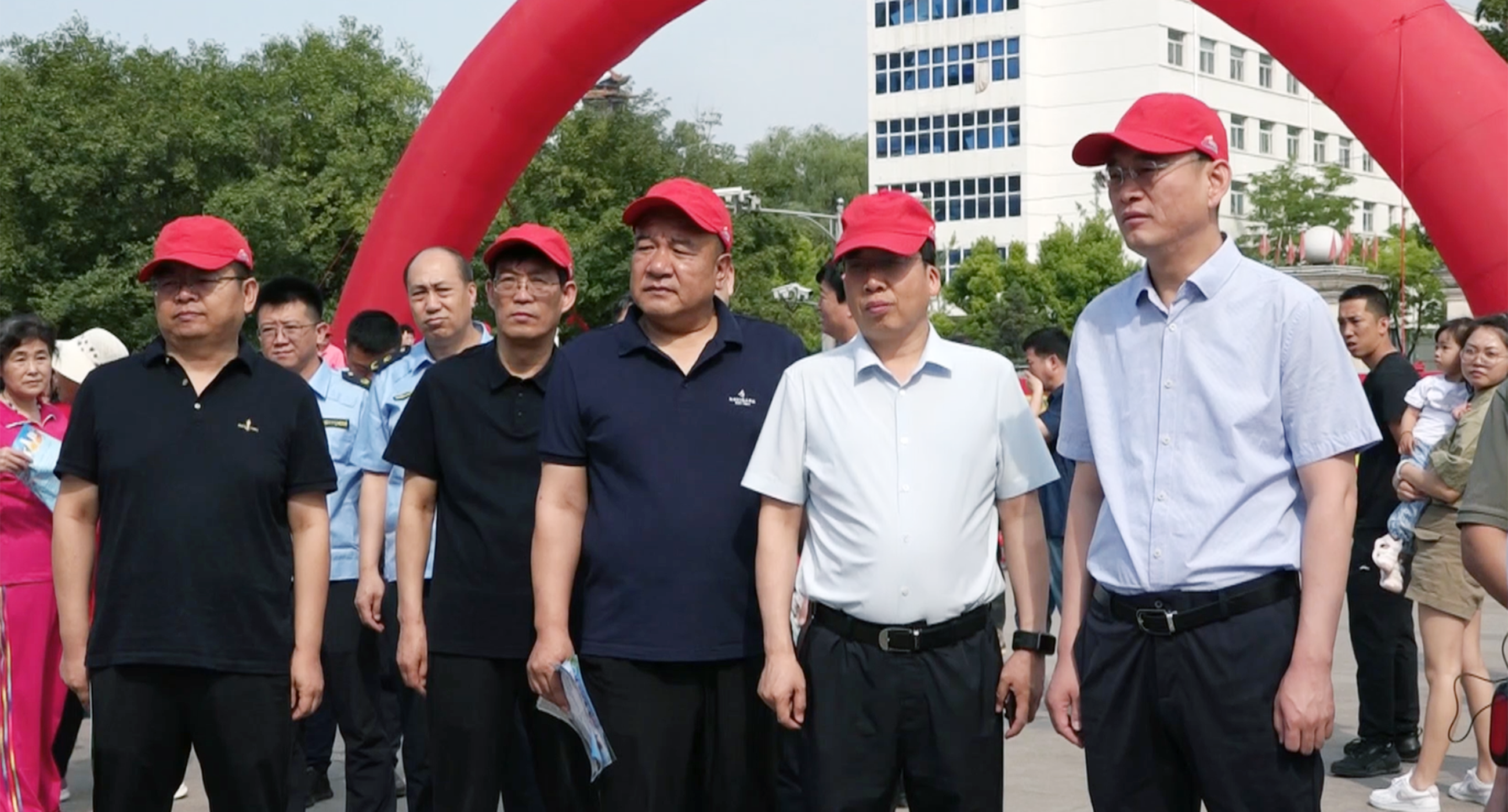古交市領(lǐng)導(dǎo)周飛、郝平貴、郭永峰、弓文慧、張慧忠在印有活動主題的橫幅上簽名。